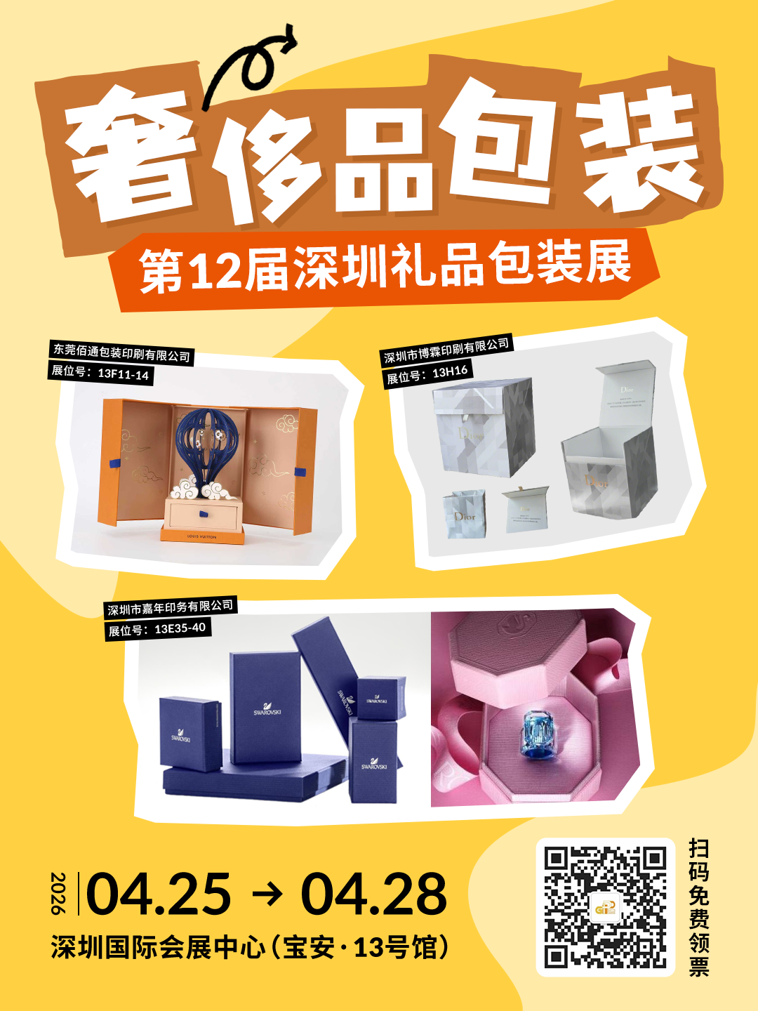 4月25-28日,第34屆深圳禮品家居展于15號(hào)館同期舉辦第12屆深圳禮品、消費(fèi)品包裝及印刷展,簡(jiǎn)直把 2026 包裝新趨勢(shì)搬來(lái)了現(xiàn)場(chǎng)!